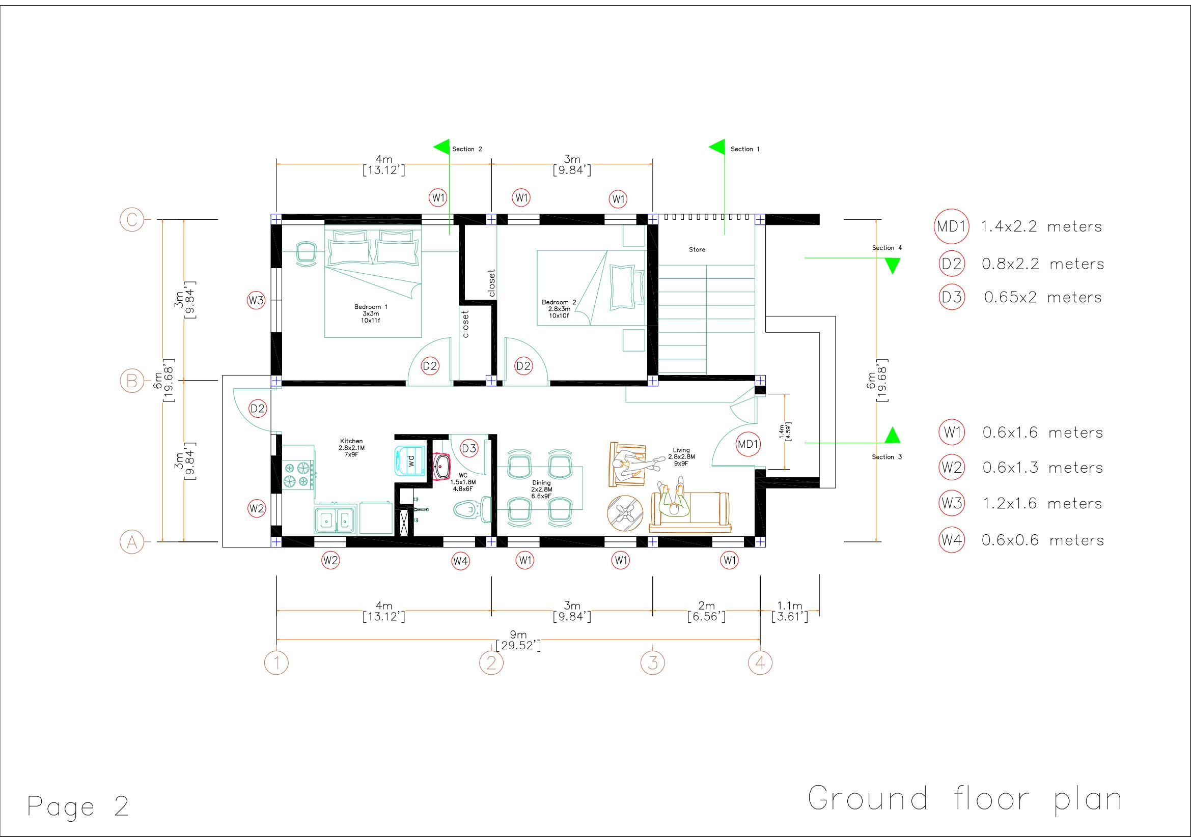 Small Home Floor Plans 9×6 Meter 30×20 Feet