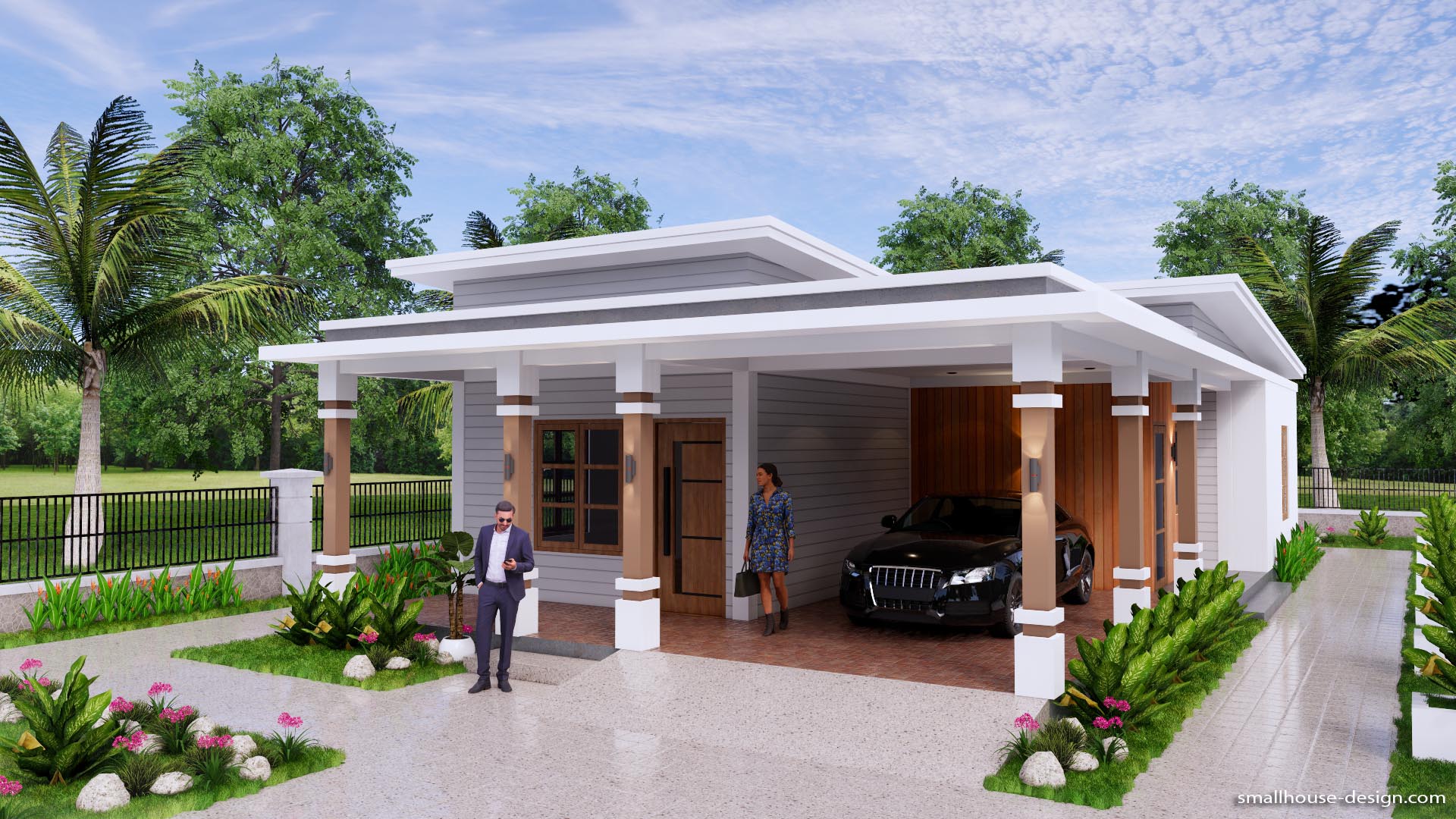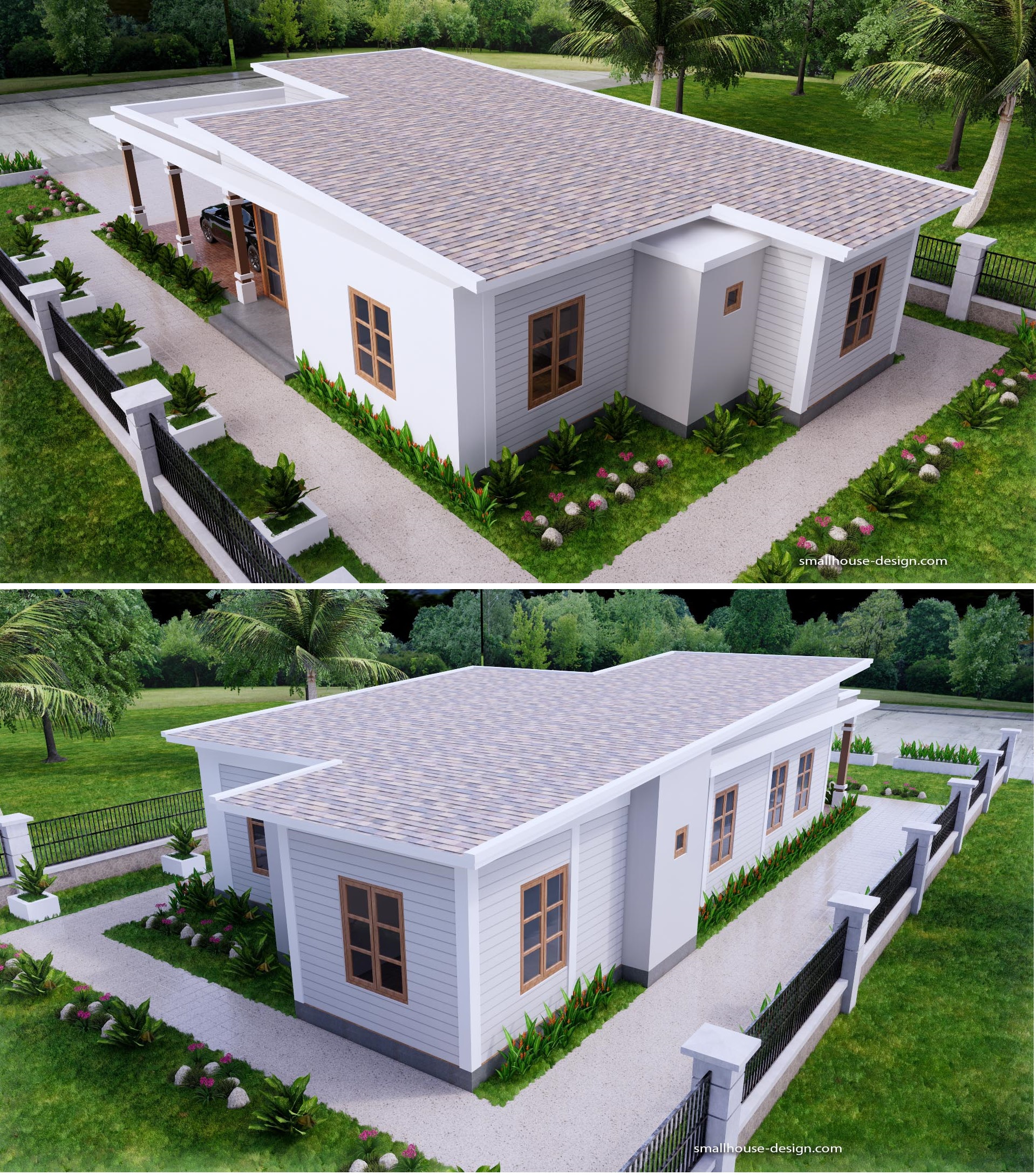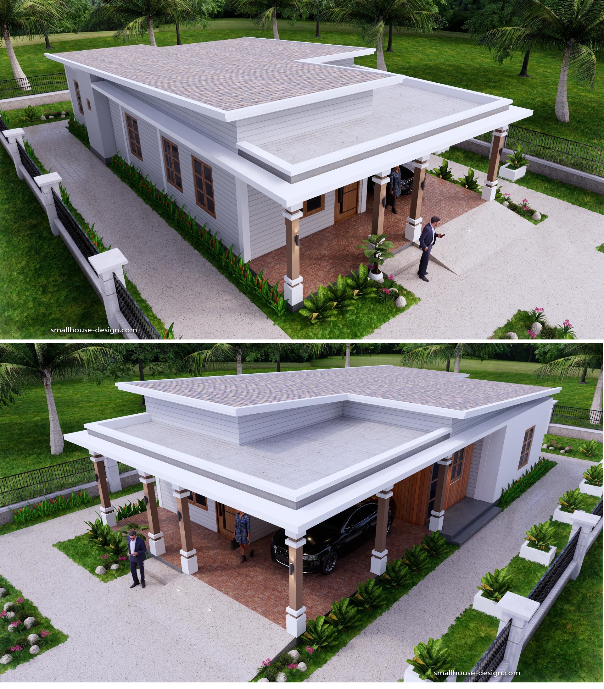 27×56 Small House Design 8×17 Meter 3 Beds PDF Plan Hip Roof. This villa is modeling by SAM-ARCHITECT With 1 stories level. It’s has 3 bedrooms with 3 Bathrooms. Est. Price around 30-40k usd construction only, furniture not include.