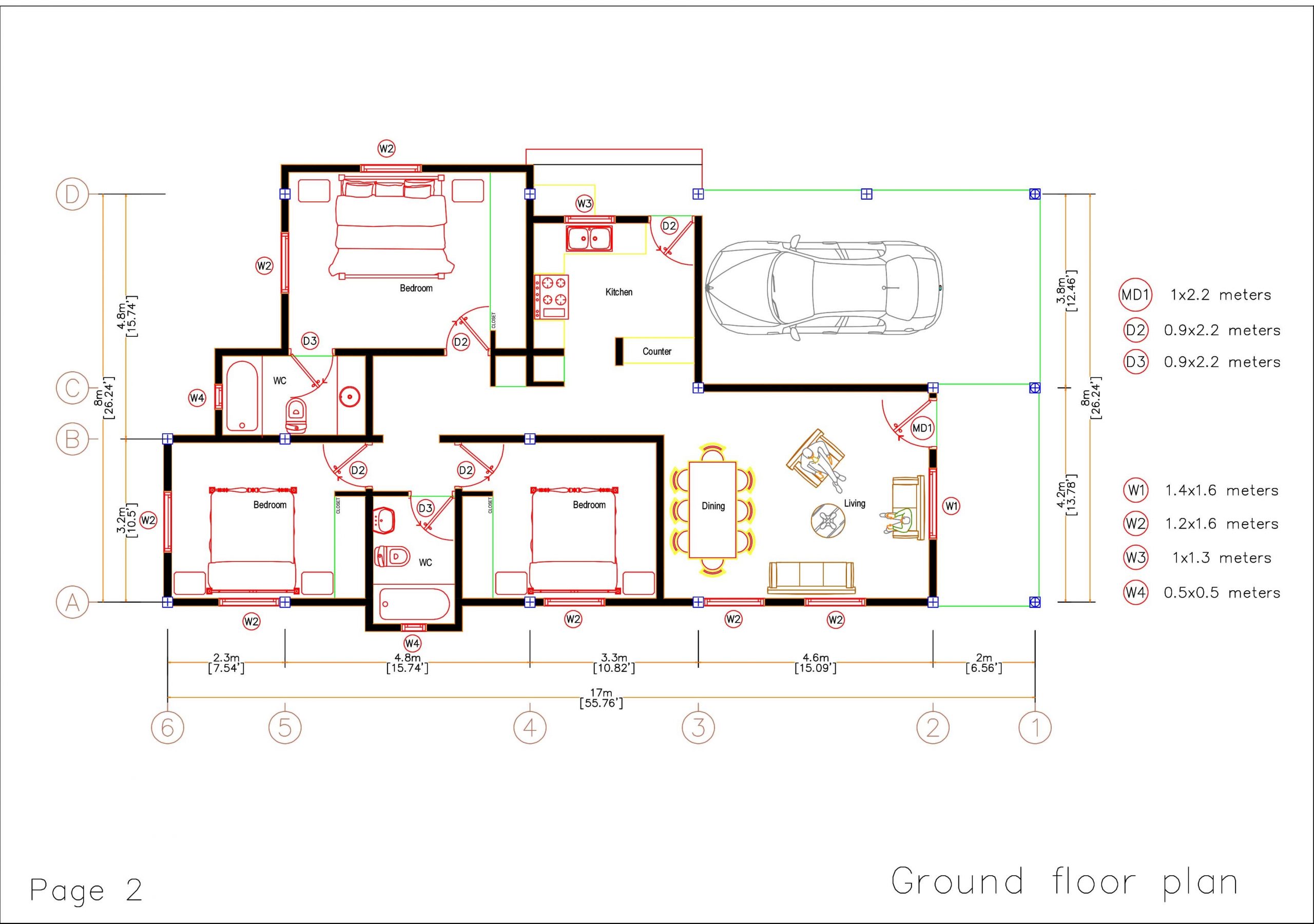 House Plan Drawing 6×10 Meters 20×33 Feet 2 Beds