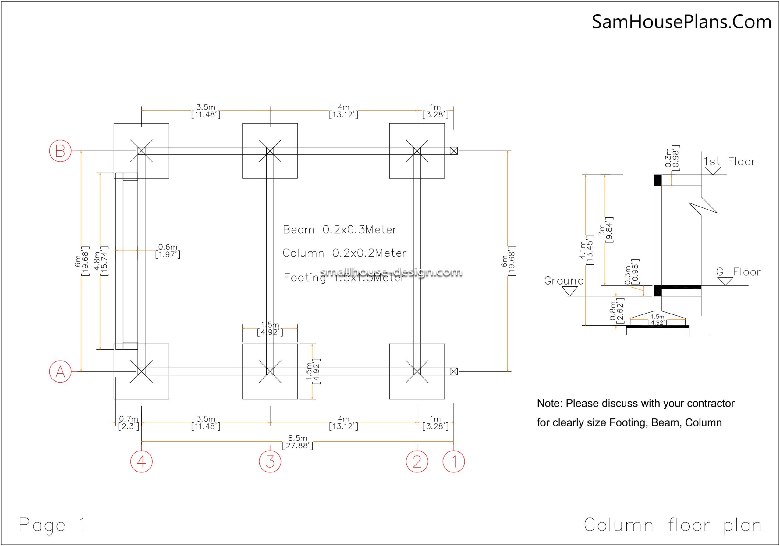Footing, Beam, Column Location plan