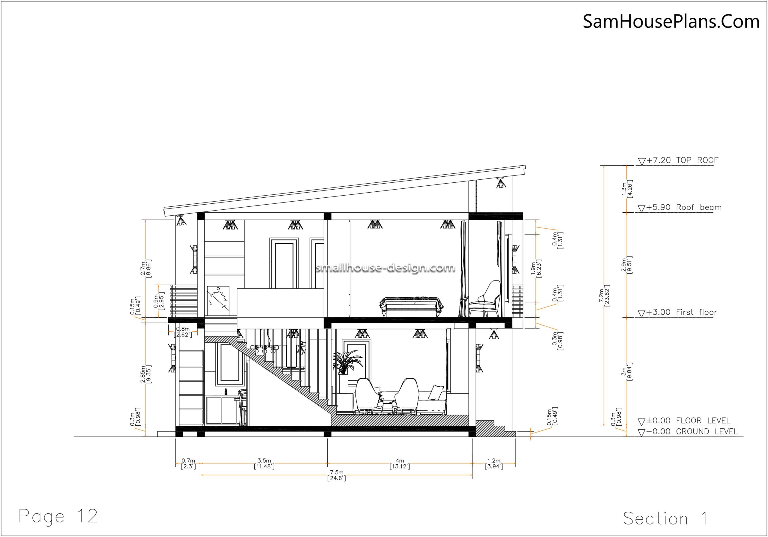 Small Design home 7×7 Meter 23×23 Feet One Bed