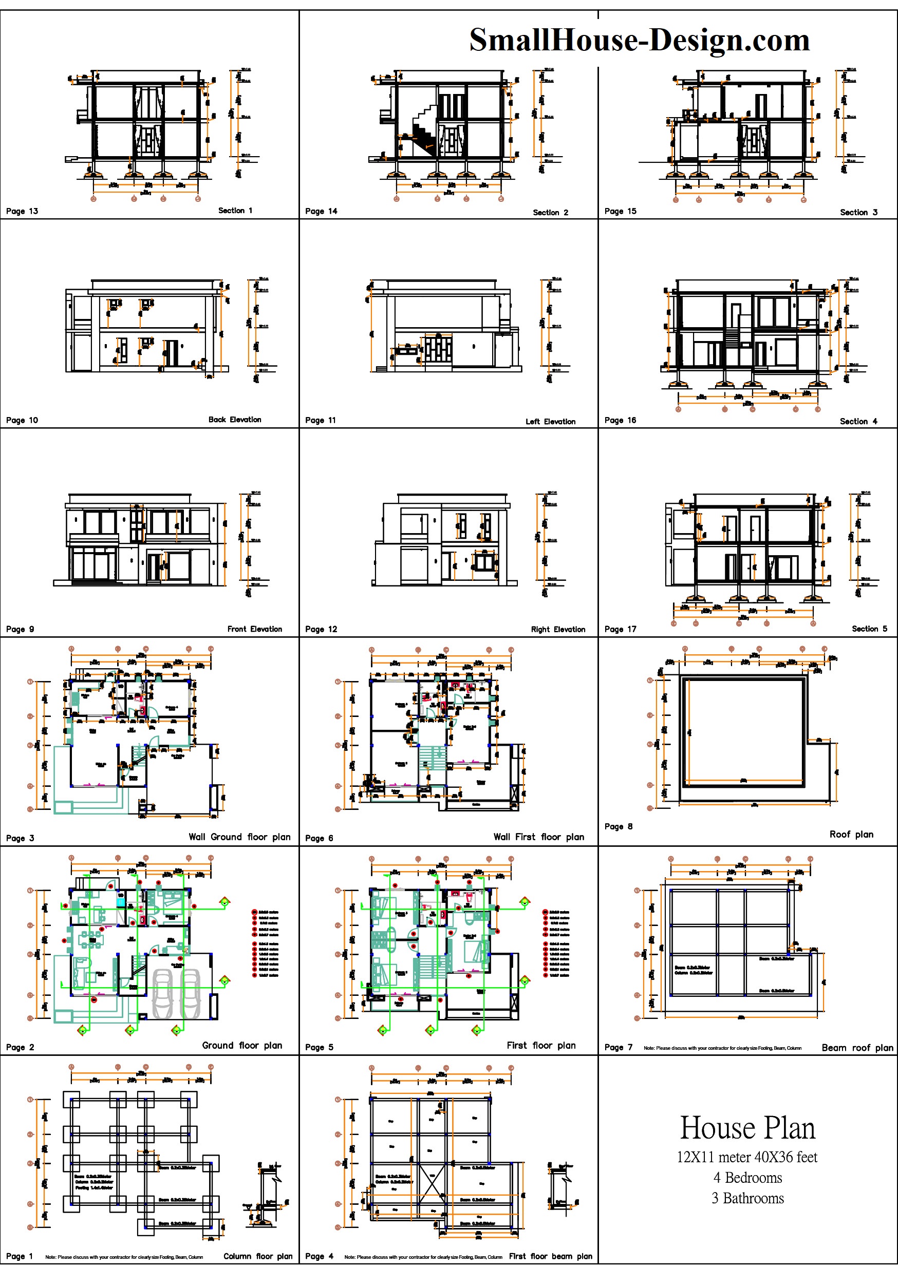 Small House Plan 12×11 m 40×36 Feet 4 Beds Pdf Full Plan. This villa is modeling by SAM-ARCHITECT With 2 stories level. It’s has 4 bedrooms. Est. Price around 80-100k usd construction only, furniture not include.